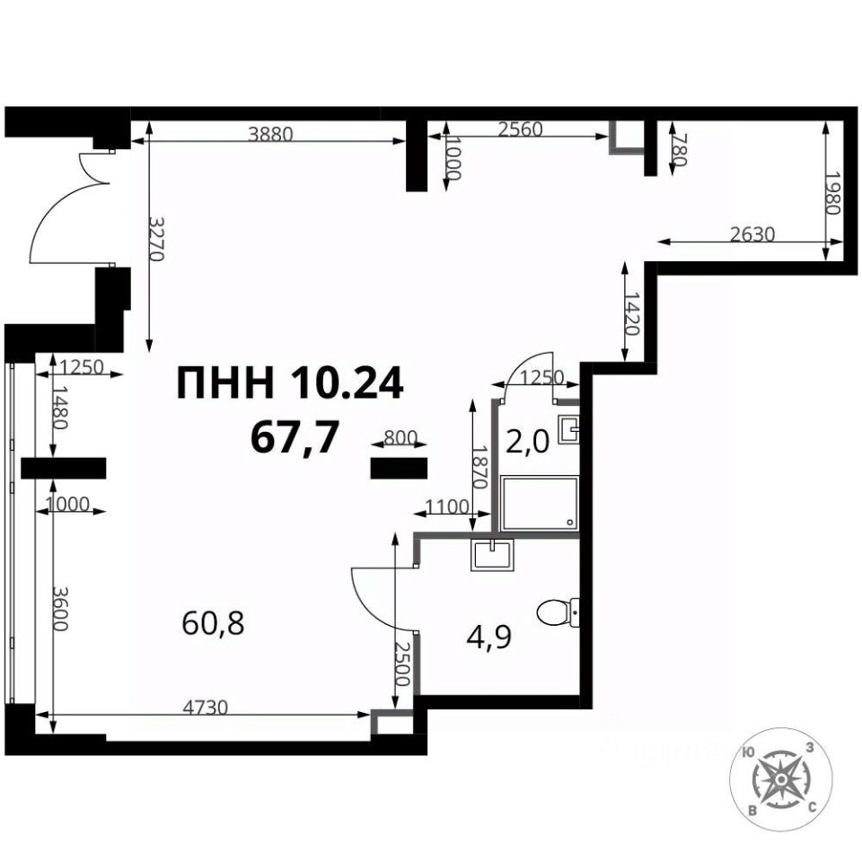 67,7 м²