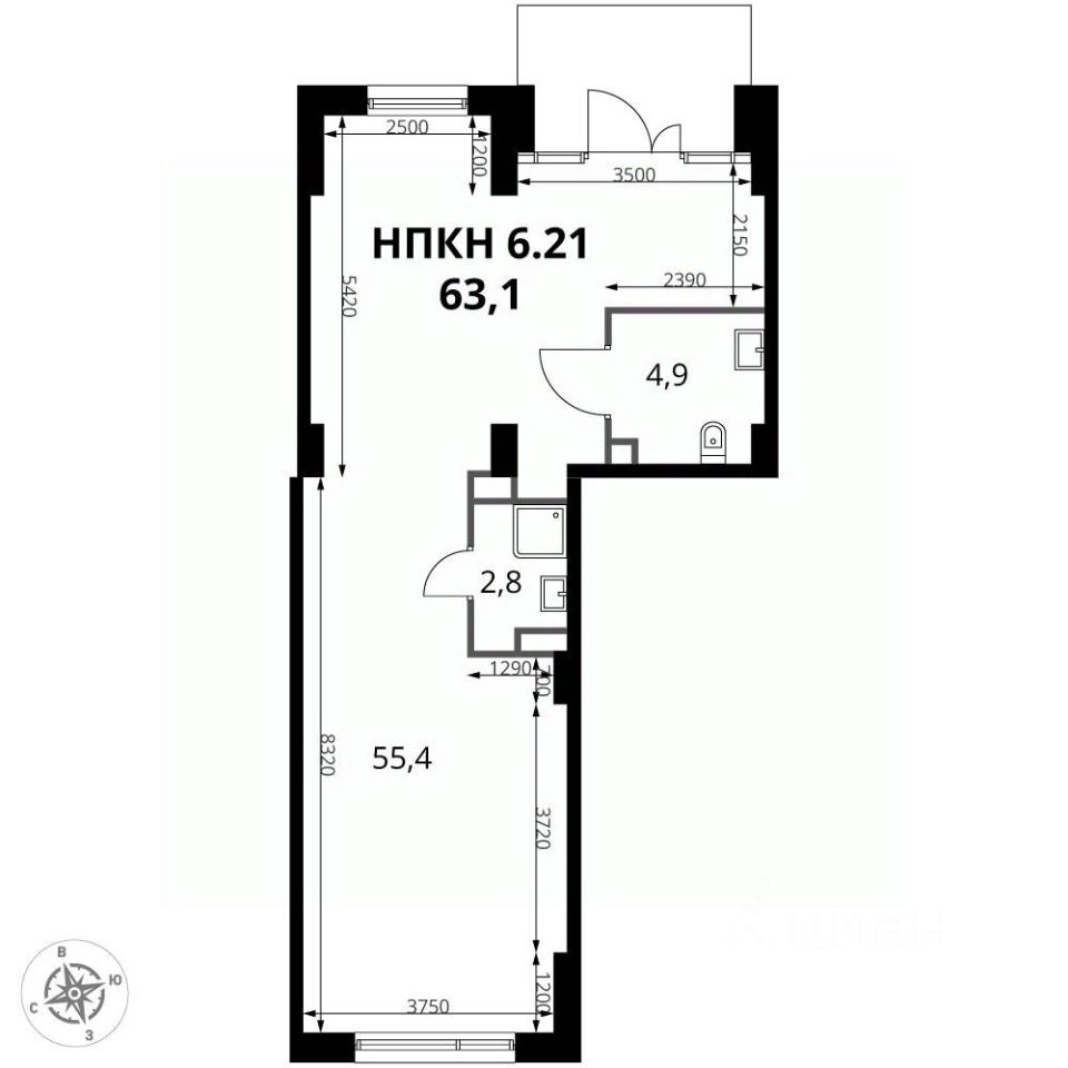 Помещение свободного назначения, 63,1 м²