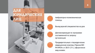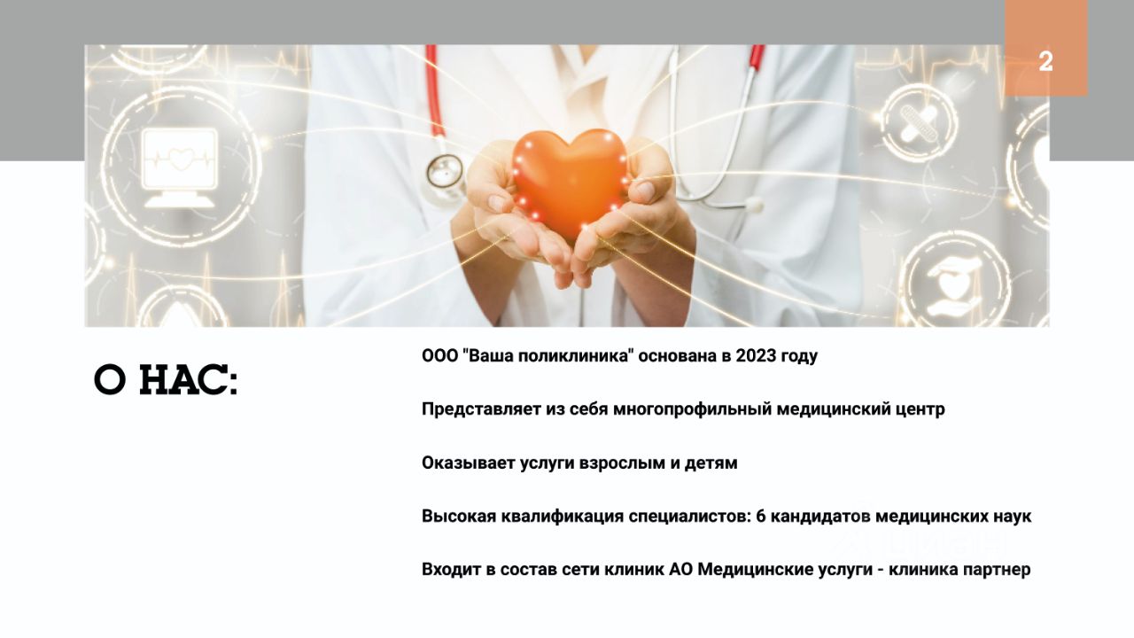 Продается готовый бизнес - поликлиника в Химках, мкр. Подрезково. Организационно-правовая форма - ООО "Ваша поликлиника". Здание трёхэтажное, абсолютно новое с лифтом в новом развивающимся микрорайоне. Оборудованием укомплектована полностью. Своя операционная, лаборатория, дневной стационар. Весь спектр медицинских услуг. Есть все лицензии на оказание медицинских услуг.
