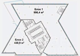 Описание помещения: Целиком этаж. Два блока, 430,9 и 996,4 м2, общей площадью 1 427,3 м2.