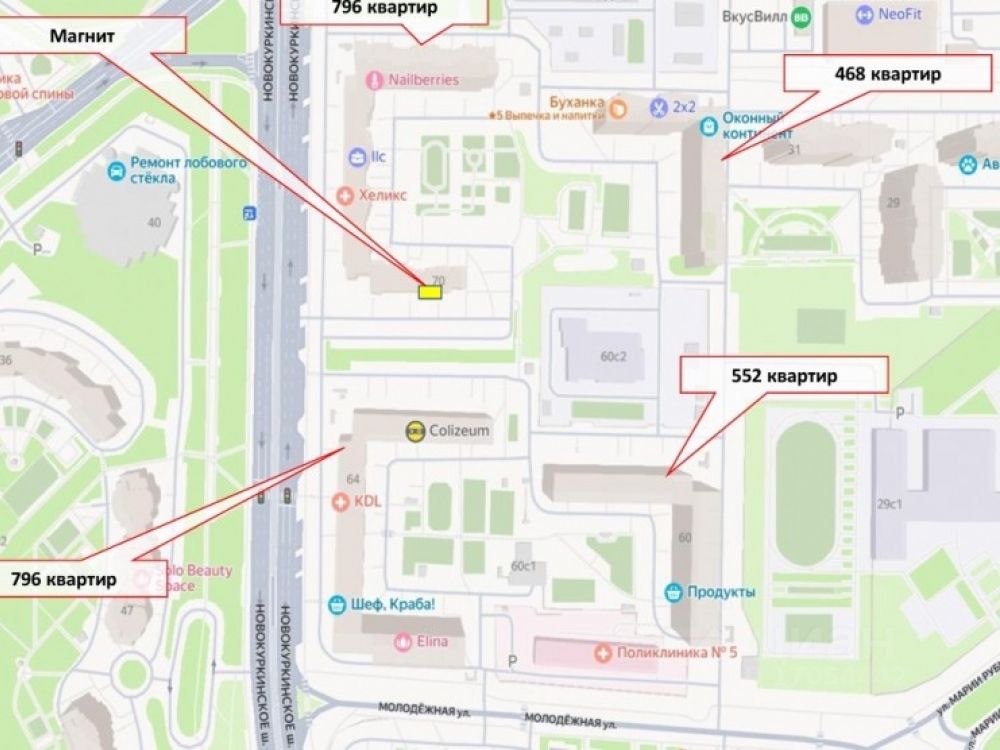 В продажу помещение 190.4 м2 на 1 этаже, ГАБ - "Магнит" по адресу: Химки, Молодёжная улица, 70