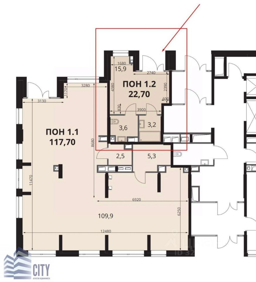 Помещение имеет правильное расположение внутри ЖК, фасадное окно и правильной формы планировку.