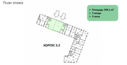 Описание помещения: Расположено на первом этаже корпуса 3.3. Оно является вторым от угла, что делает его заметным для посетителей. Помещение имеет два входа и три окна, что обеспечивает удобство для клиентов и сотрудников.