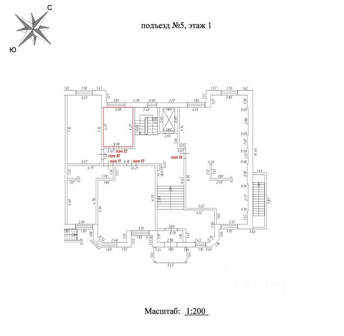 Нежилое помещение без ремонта на первом этаже жилого дома.