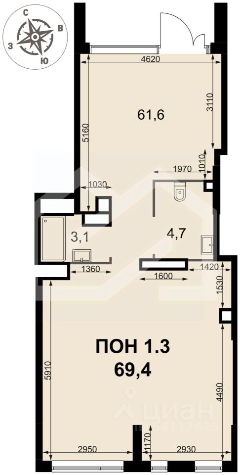 1085070 . Предлагаем помещение свободного назначения формата street-retail в ЖК "1-й Химкинский", площадью 69.4 кв. м, расположенное на первом этаже 17-этажного жилого дома. Корпус: 1.3, 4 секция. Без комиссии для покупателя.