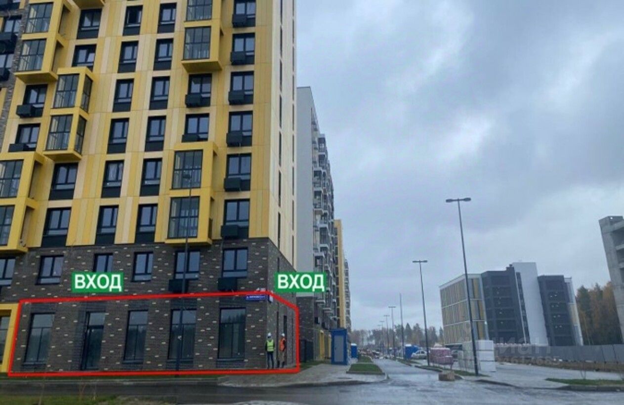 Помещение расположено в торце корпуса 1.1, рядом с входом на закрытую территорию. Дворовая территория комплекса благоустроена: предусмотрены зоны отдыха, детские и спортивные площадки, места для прогулок.