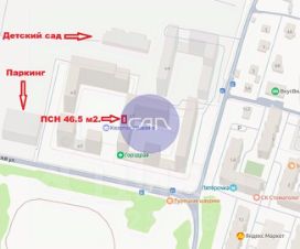 Помещение: 46,5 м на 1 этаже нового жилого комплекса с высоким пешеходным трафиком (25 000+ жителей).