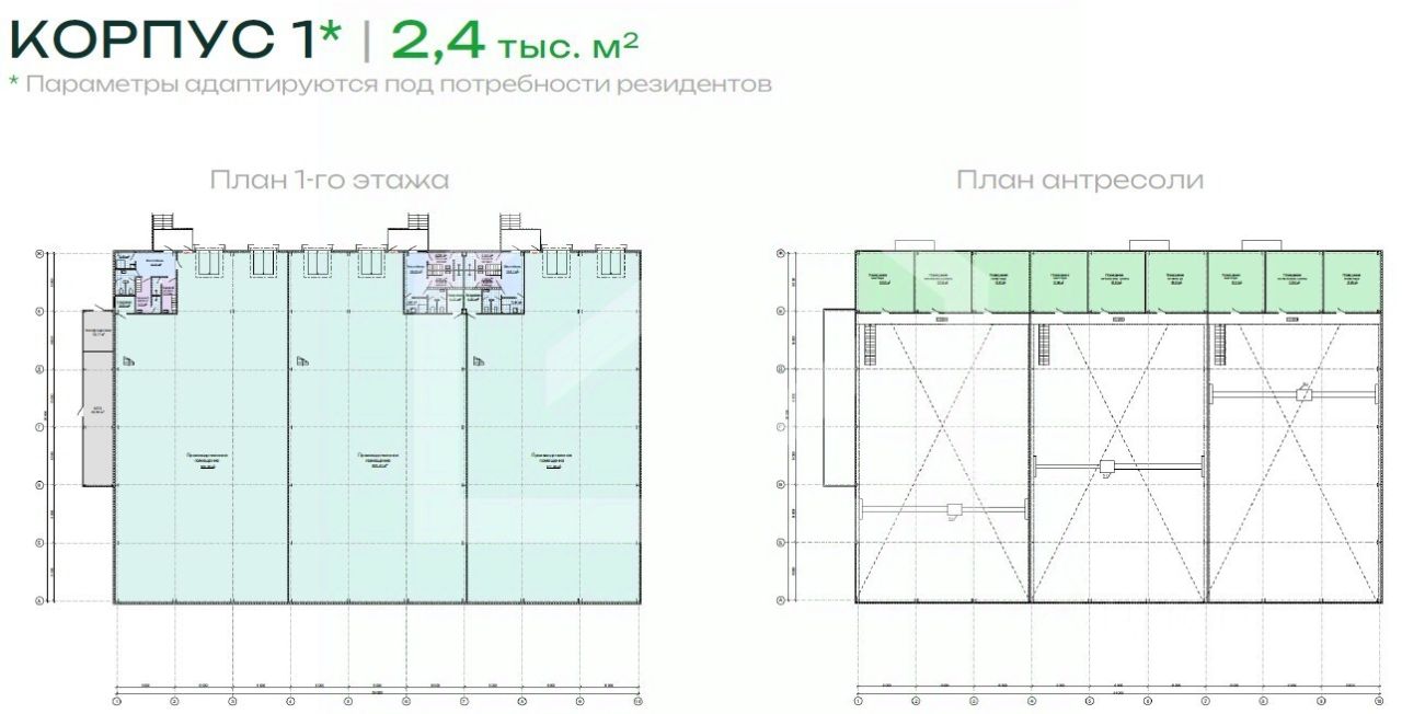 Общая площадь: 2 340 кв. м. (в т.ч. АБК на мезонине).
