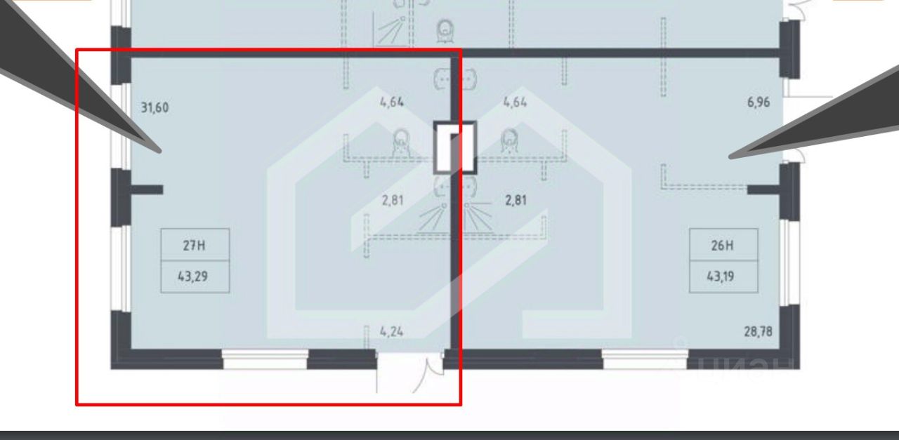 905211-s . Предлагаем помещение свободного назначения формата Street Retail, площадью 43.29 кв. м., расположенное на первом этаже жилого дома в ЖК "Квартал Ивакино". Без комиссии для покупателя.