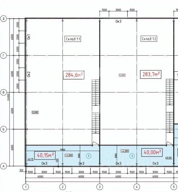 Зона погрузки/разгрузки: 1 ворота на уровне 0 м.