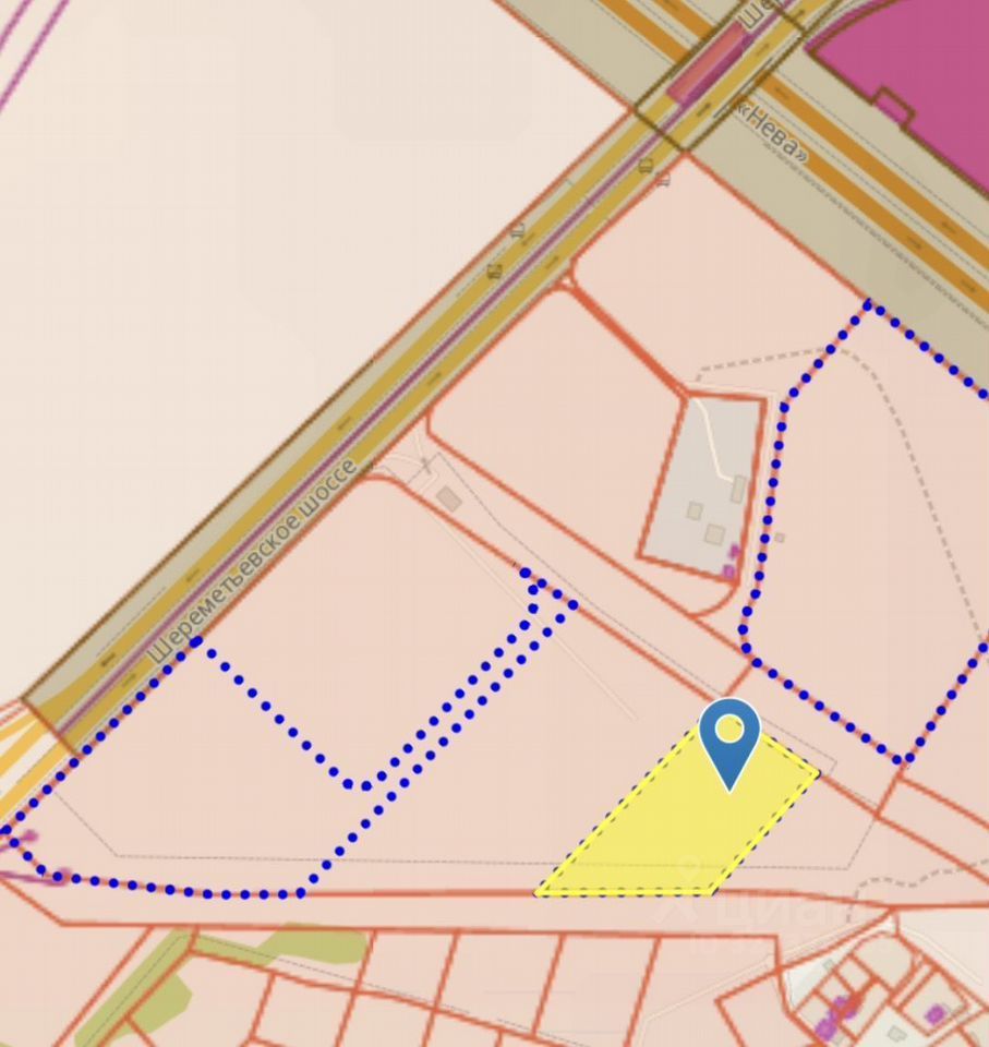 Участок расположен в 300 метрах от Шереметьевского шоссе.