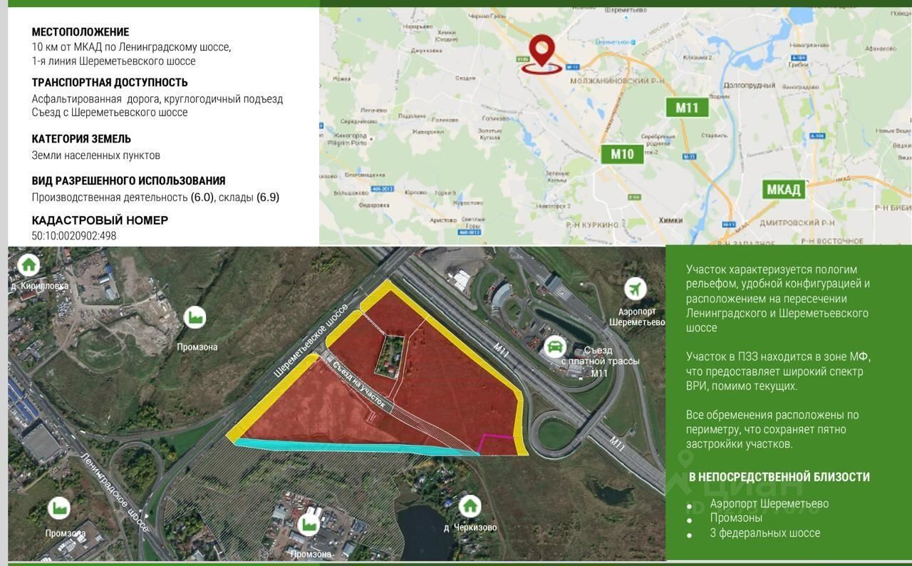 Промышленная зона Молжаниново М10 находится в 10 км от Мкад по Ленинградскому шоссе.