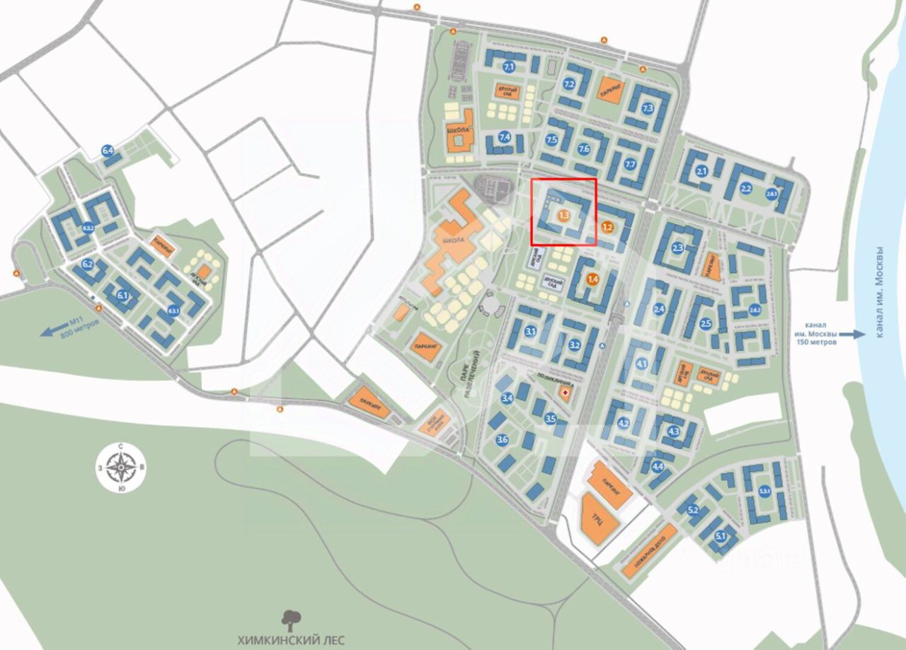 -ЖК состоит из 36 корпусов переменной этажности (от 4 до 17 этажей), рассчитанных на 1 855 квартир;
