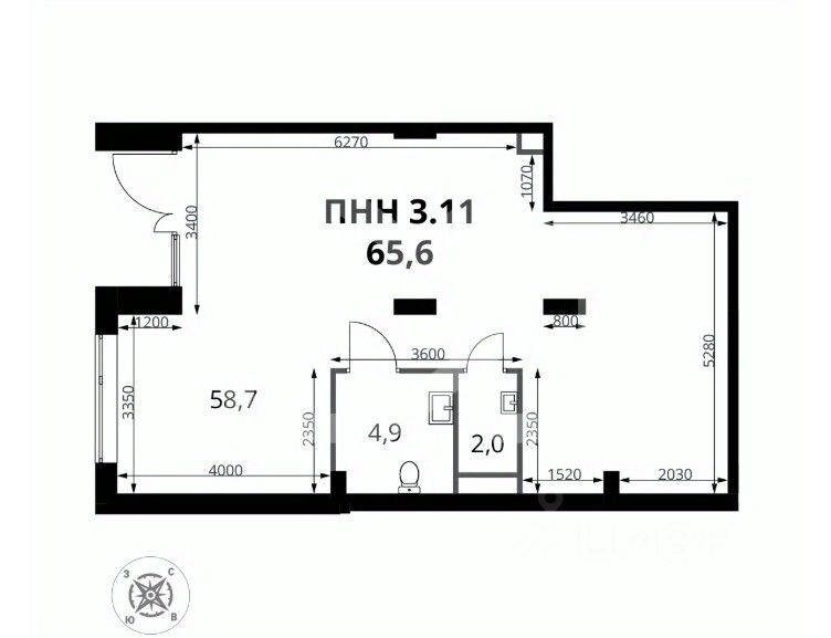 • Общая площадь65,6 м²