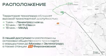 Быстрый выезд на Ленинградское шоссе (200 м) и М-11 НЕВА (3 км), 18 минут до МКАД. В пешей доступности остановки общественного транспорта в Москву и Зеленоград и станция МЦД-3 Фирсановская.