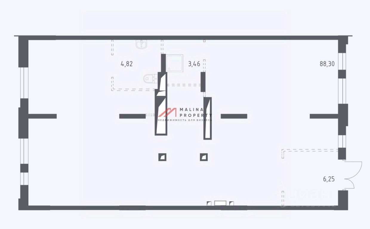 Помещение 103 м2, располагается на 1-м этаж, отдельный вход с фасада, витринные окна. Под отделку. Электрическая мощность 21 кВт, высота потолка 4 м. Место для размещения рекламы. Парковка перед фасадом. Соседнее помещении занимает супермаркет "Магнит".