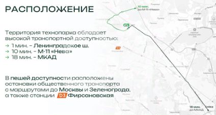 Быстрый выезд на Ленинградское шоссе (200 м) и М-11 НЕВА (3 км), 18 минут до МКАД.