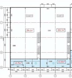 1-я очередь промышленного парка "Луневское" состоит из 4 зданий 1418 м2 каждое, разделенных на блоки 140-284 м2.