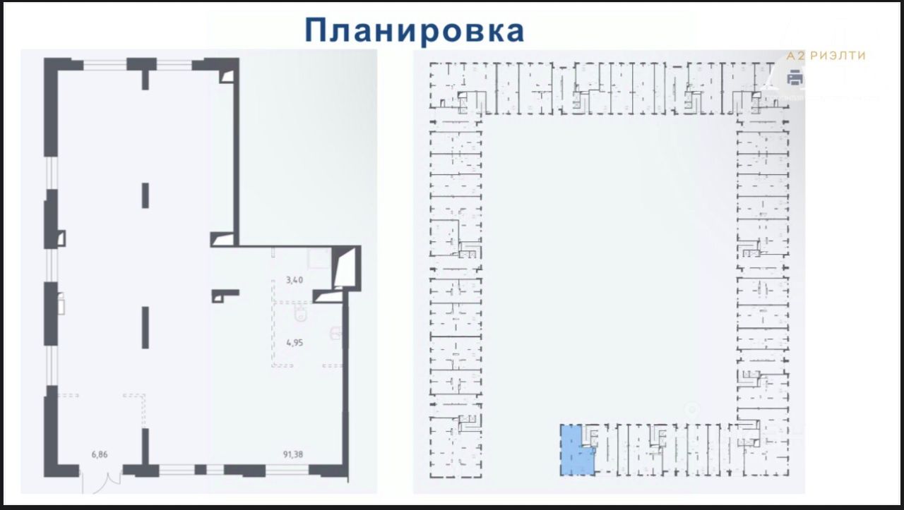 Планировка с выходом на две стороны, удобно для зонирования и различных бизнес-задач
