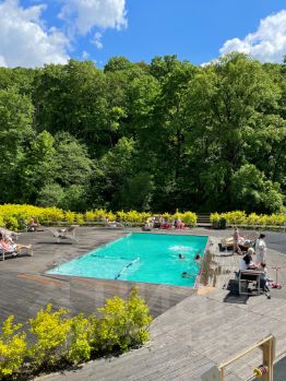 На территории ЖК бассейн с подогревом и подсветкой; детские и спортивные площадки.