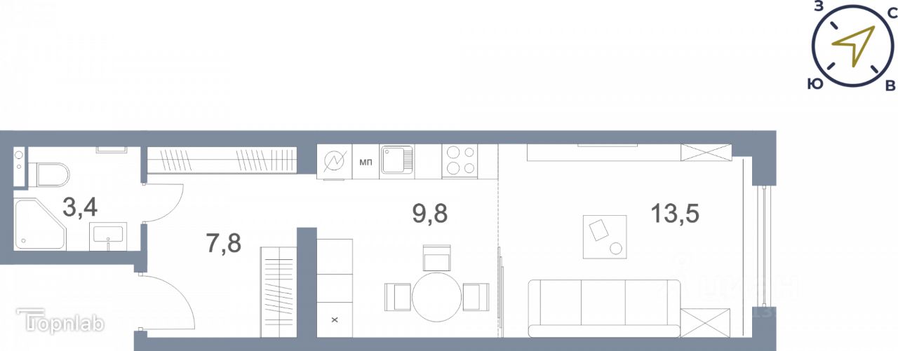 Арт. 100157035 За объект внесен аванс. ПРОДАЕТСЯ 1 квартира-студия с прихожей, общая площадь 34,5 кв.м , высокие потолки 3.3 м, что создает объем пространства, возможно сделать спальню на антресоли. Панорамные окна (с улицы сделана тонировка, что создает приватность в квартире).