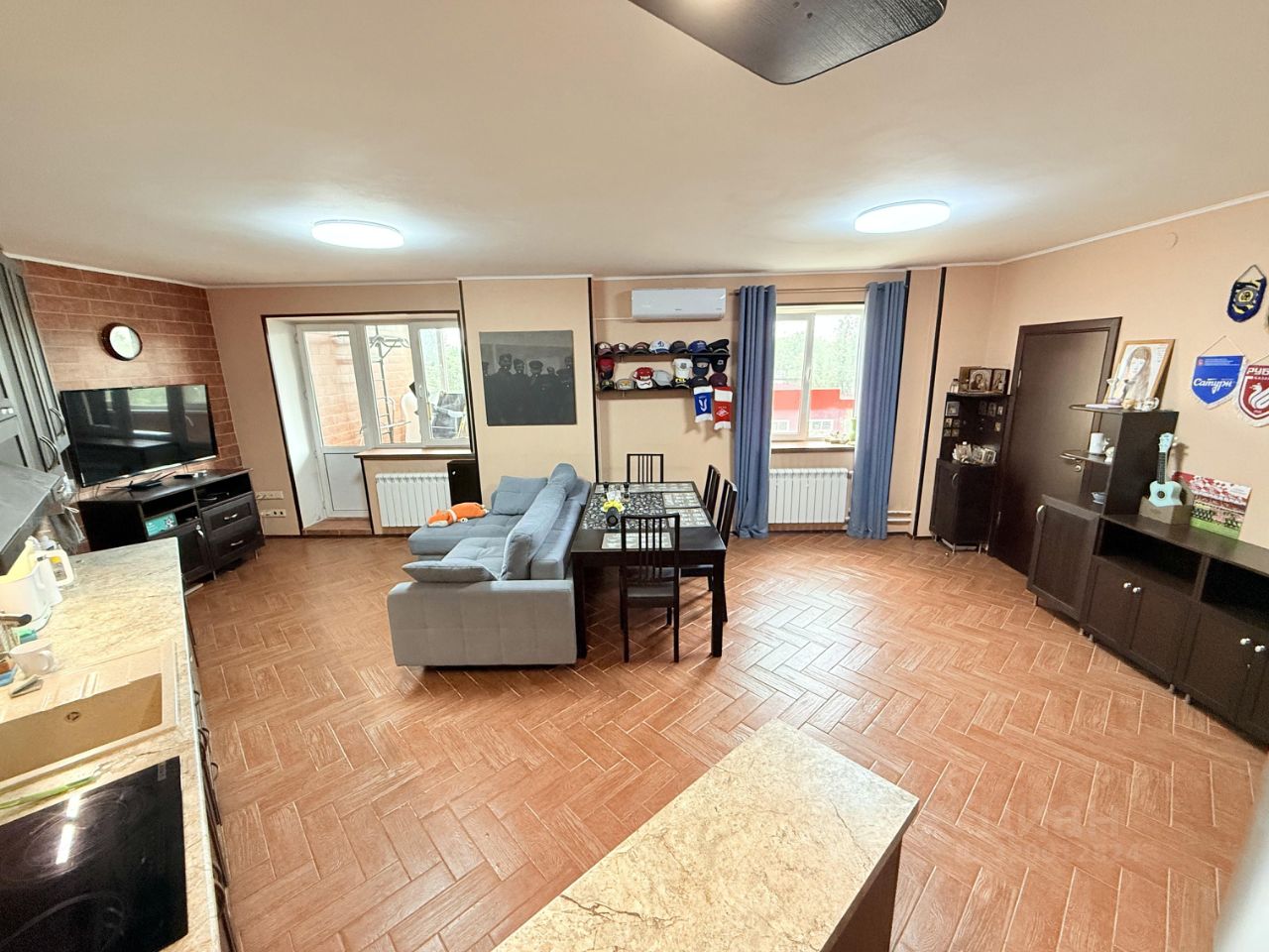 Продаётся большая 3-х комнатная квартира на 5-ом этаже в 16-ти этажном монолитно кирпичном доме 2006 года постройки, расположенном по адресу: Московская обл., г. Химки, мкр. Сходня, ул. Вишневая, д. 14. Площадь квартиры с учетом площади двух лоджий 102,2 м2, без учета площади лоджий 90,8 м2. Площадь кухни-гостиной 33,9 м2. Жилая площадь 41,5 м2 (три изолированные комнаты: 11,0 м2 и 15,3 м2 и 12,6 м2). Два санузла 2,0 м2 и 3,5 м2. Гардеробная 2,3 м2. Утепленная лоджия с внутренней отделкой 7,8 м2 (выход на лоджию из гостиной). Утепленная лоджия с внутренней отделкой 3,6 м2 (выход из комнаты). Коридор 10,2 м2. Полы в комнатах - ламинат, в прихожей, кухне и санузле - плитка. Пластиковые стеклопакеты. Металлическая входная дверь. Окна квартиры выходят на одну сторону, планировка линейка. В квартире без дополнительной оплаты с покупателя остаются нижеуказанные предметы мебели и бытовой техники: кухня-гостиная: встроенная кухонная мебель, варочная панель, вытяжка, кондиционер, духовой шкаф, стол, стулья, стиральная машина; комната 1: кровать (каркас), тумбочки, комод, кондиционер; комната 2: письменный стол, навесные полки, шкаф, книжный шкаф, комод, диван; комната 3: письменный стол, навесные шкафчики 3 шт., шкаф-2шт., книжный шкаф, комод 3 шт.; прихожая: зеркало, тумба для обуви 2 шт., полка для обуви, книжный шкаф, шкаф. Парковка для автомобилей во дворе. Вся инфраструктура в пешей доступности: рядом муниципальные детские сады, лицей 21, академия туризма, супермаркет Дикси, Пятерочка, Магнит, детская и взрослая поликлиники, аптеки, МФЦ, отделение Сбербанка, салоны красоты, ателье, химчистка. До станции наземного метро МЦД-3 Сходня 5 минут пешком. В собственности у 5 человек на основании приватизации по решению суда 2022г. Полная стоимость в договоре. Никто не прописан. Альтернатива. Без обременений. Цена: 15 000 000 руб.