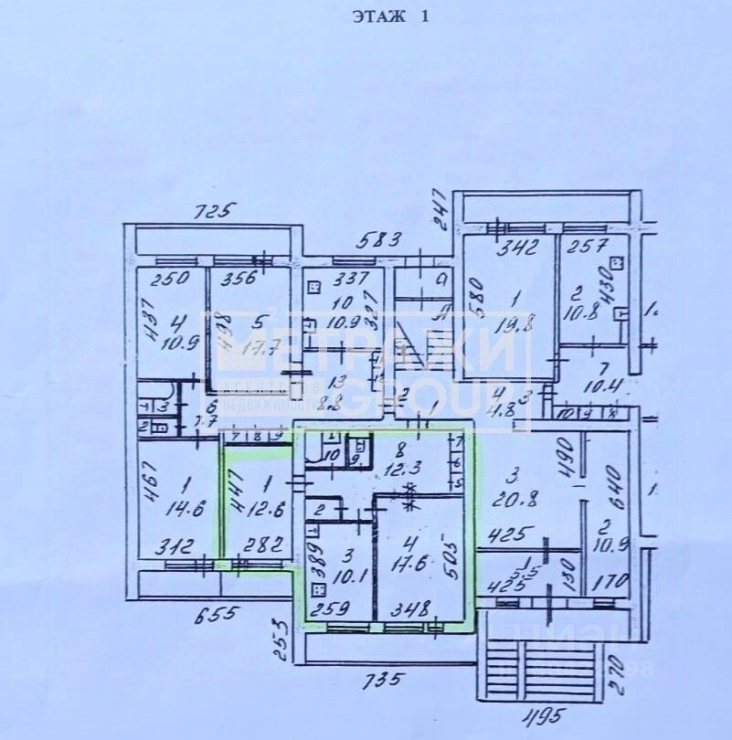 Общая площадь составляет 57.9 м2, из них жилая площадь - 30.2 м2, кухня - 10.1 м2. два отдельных балкона в каждой комнате общей площадь 6,4м2;