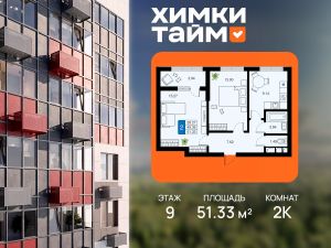 Продается двухкомнатная квартирав жилом комплексе комфорт класса "Химки Тайм" площадью 51.33 кв.м на 9 этаже 20 этажного дома. Квартира с полной отделкой, окна выходят во двор и на улицу.