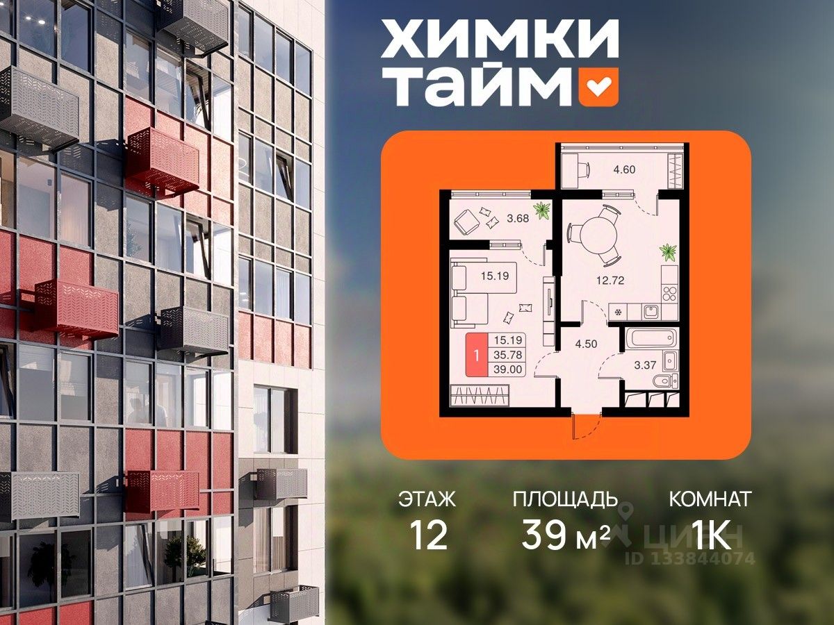Продается однокомнатная квартира в жилом комплексе комфорт класса "Химки Тайм" площадью 39 кв.м на 12 этаже 20 этажного дома. Квартира с полной отделкой, окна выходят на улицу.