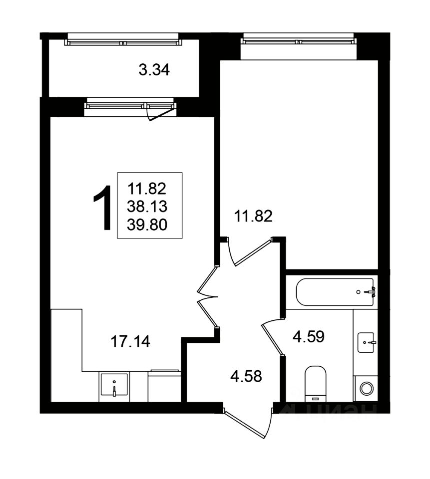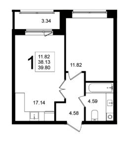 Продаётся 1-комнатная квартира в строящемся доме (Корпус 8), срок сдачи: 4-кв. 2025, общей площадью 39.80 кв.м., на 1 этаже.