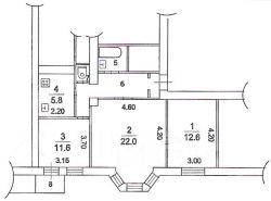 Планировка линейная со смежно-изолированными комнатами.
