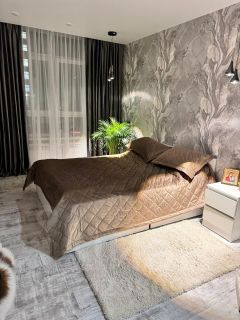В квартире 3 комнаты: детская, спальня, кухня-гостиная. Здесь продумано всё до мелочей: для вашего удобства предусмотрено более одного санузла, в одном из которых совмещены туалет и ванна, во втором сомещены туалет и постирочная, что является несомненным преимуществом для большой семьи или при приеме гостей. Имеются 2 гардеробные. Вся мебель в квартире сделана на заказ по индивидуальному проекту.