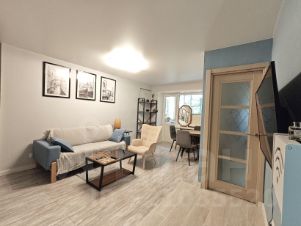 В квартире сделан качественный евроремонт, каждая деталь продумана до мелочей. Просторные и светлые комнаты, уютная кухня площадью 5 кв. м, где удобно разместится вся необходимая техника. Совмещенный санузел оформлен современно и практично. На балконе можно организовать зону отдыха или мини-оранжерею.