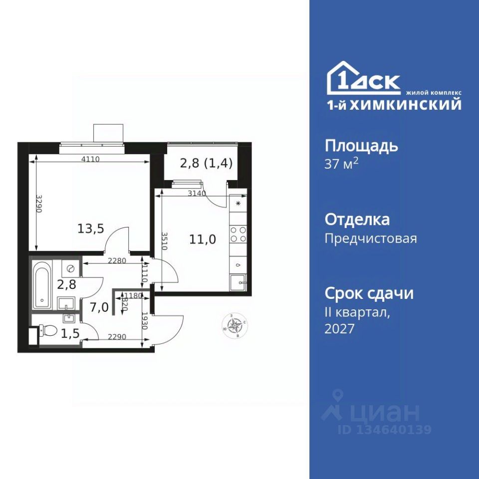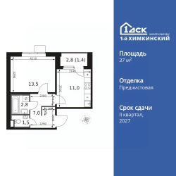 Продаётся 1-к квартира номер 68 общей площадью 37.2 кв.м. на 6-м этаже 17 этажного здания. Отделка Whitebox.