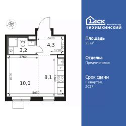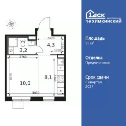 Продаётся квартира-студия номер 94 общей площадью 25.6 кв.м. на 8-м этаже 17 этажного здания. Отделка Whitebox.