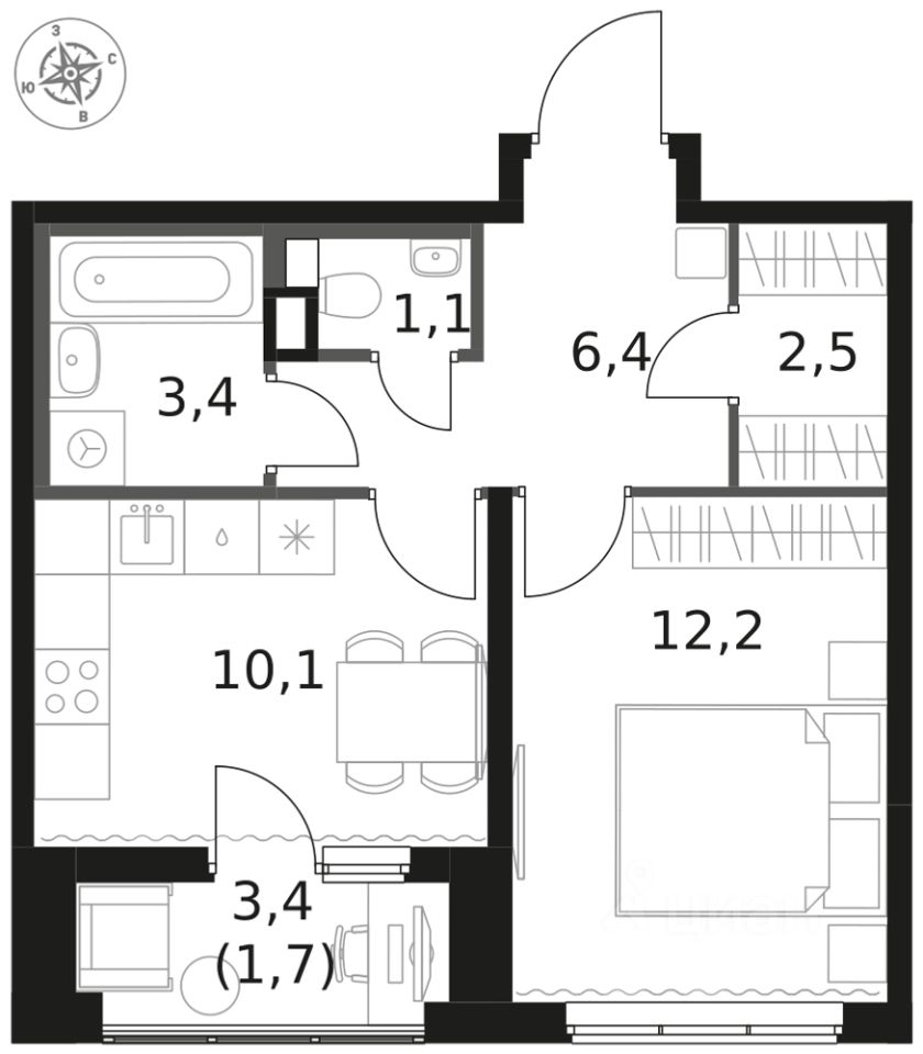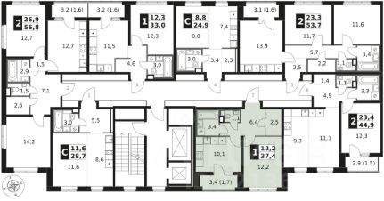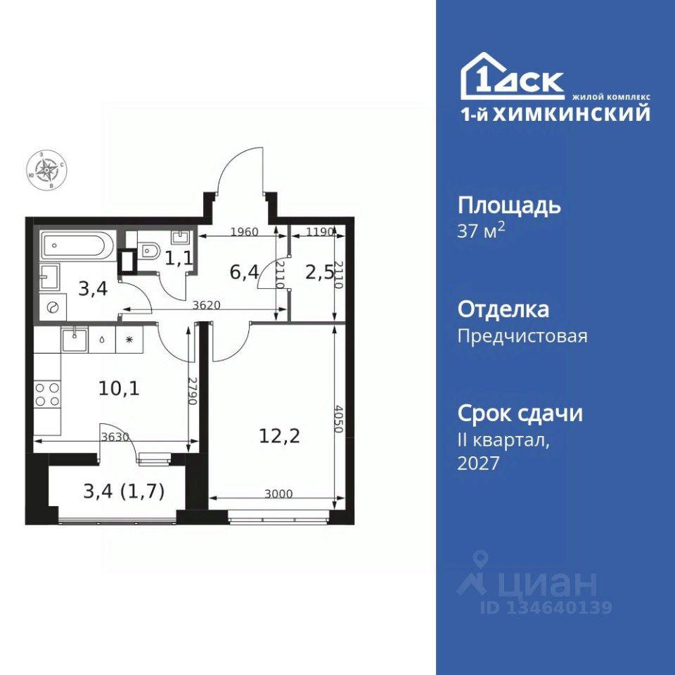 Продаётся 1-к квартира номер 364 общей площадью 37.4 кв.м. на 2-м этаже 12 этажного здания. Отделка Whitebox.
