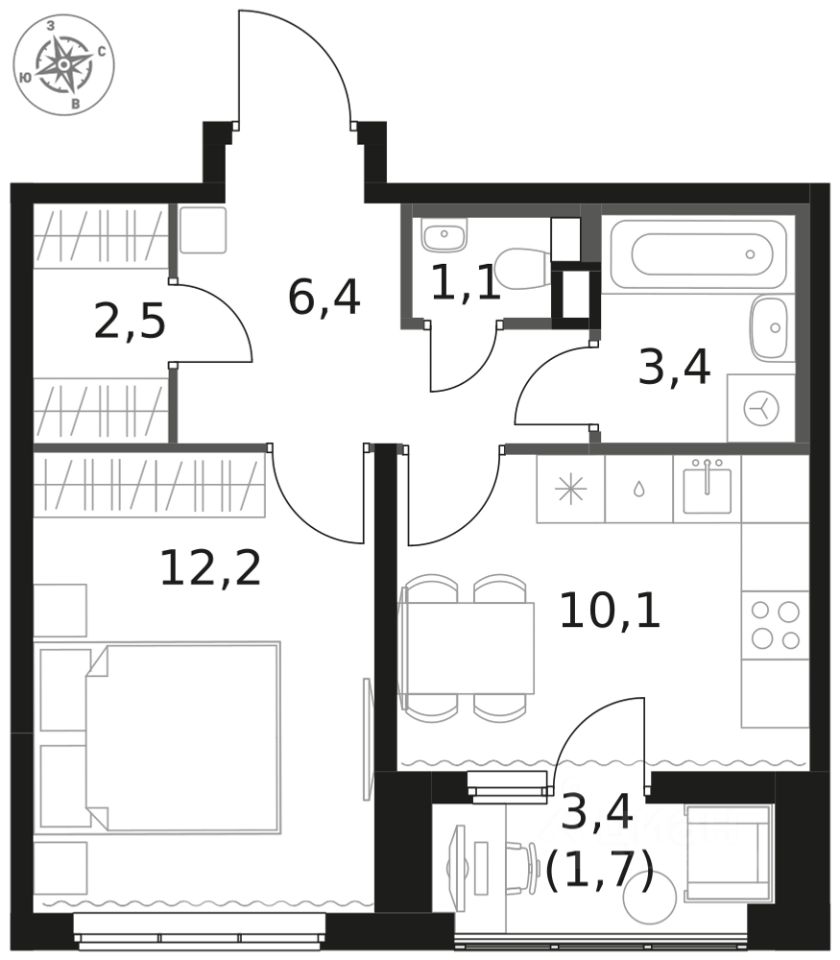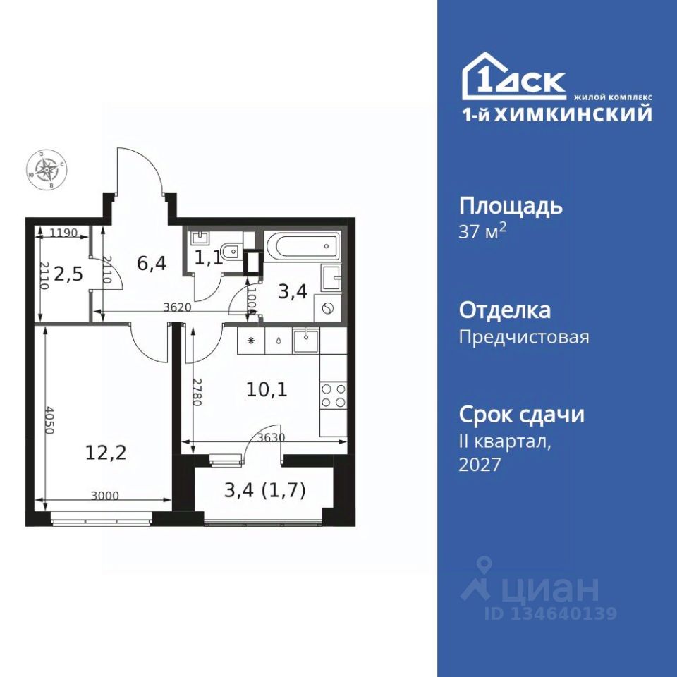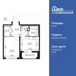 Продаётся 1-к квартира номер 435 общей площадью 37.4 кв.м. на 2-м этаже 14 этажного здания. Отделка Whitebox.