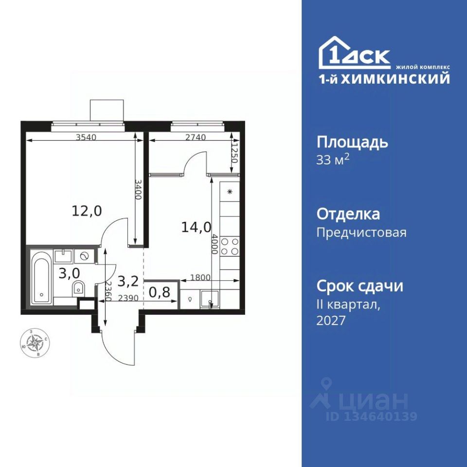 Продаётся 1-к квартира номер 567 общей площадью 33 кв.м. на 6-м этаже 17 этажного здания. Отделка Whitebox.