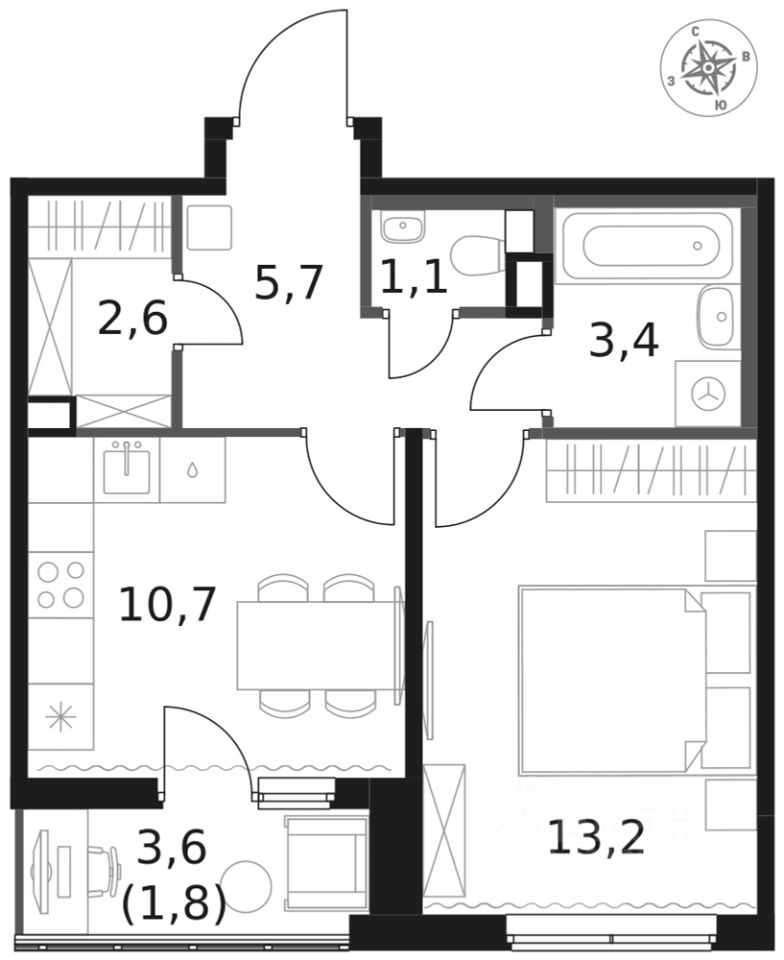 - Раздельный санузел - больше удобства для всех членов семьи.