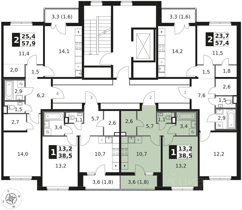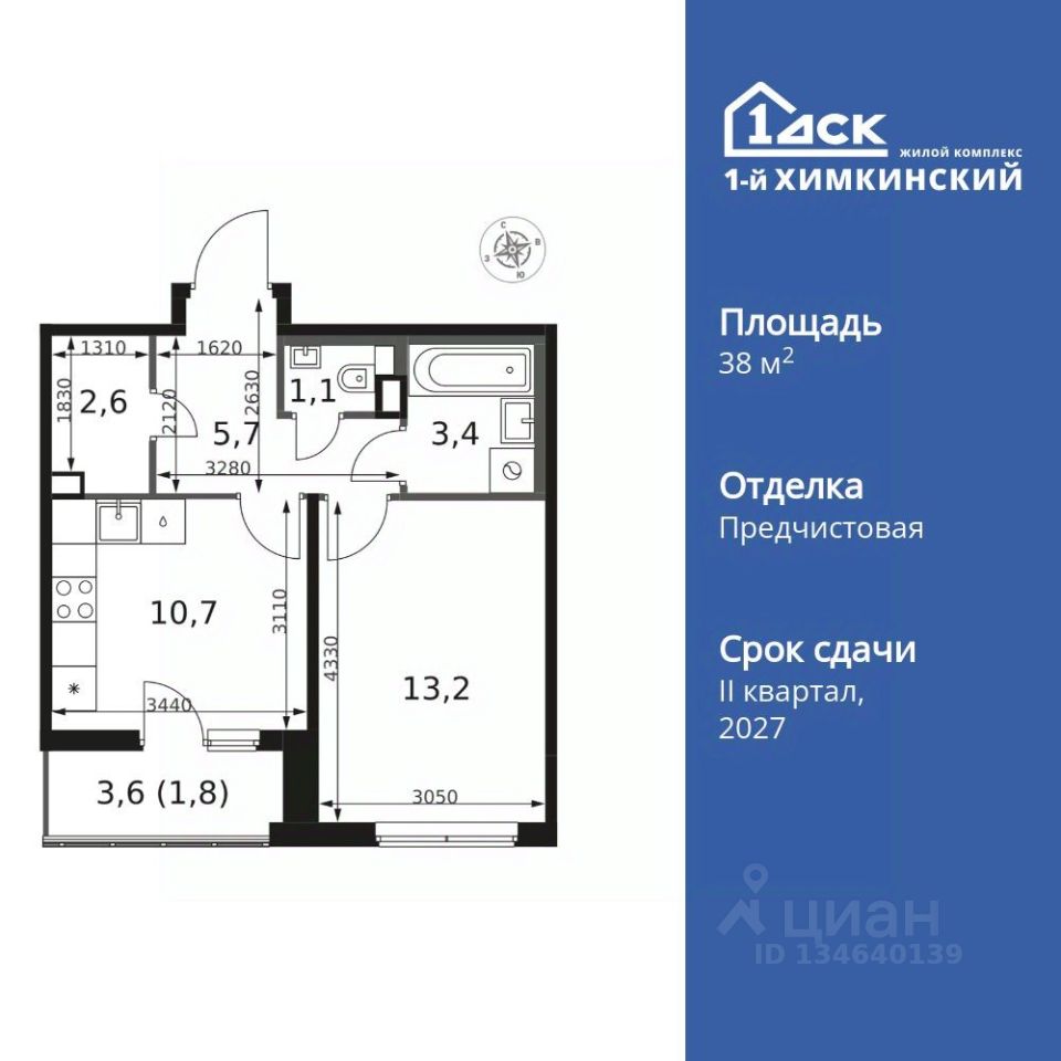 Продаётся 1-к квартира номер 671 общей площадью 38.5 кв.м. на 2-м этаже 8 этажного дома. Отделка Whitebox.