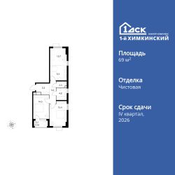 Продаётся 3-к квартира номер 420 общей площадью 69.5 кв.м. на 7-м этаже 7 этажного здания. Чистовая отделка.