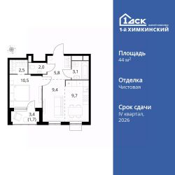 Продаётся 2-к квартира номер 423 общей площадью 44.7 кв.м. на 7-м этаже 7 этажного здания. Чистовая отделка.