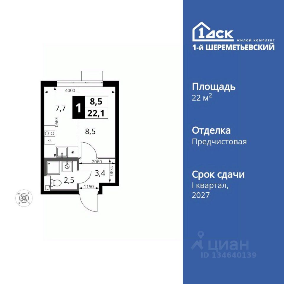 Продаётся квартира-студия номер 125 общей площадью 22.1 кв.м. на 12-м этаже 16 этажного здания. Отделка Whitebox.