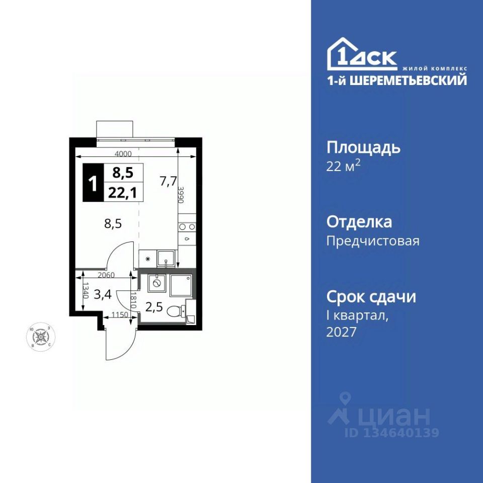 Продаётся квартира-студия номер 126 общей площадью 22.1 кв.м. на 12-м этаже 16 этажного здания. Отделка Whitebox.
