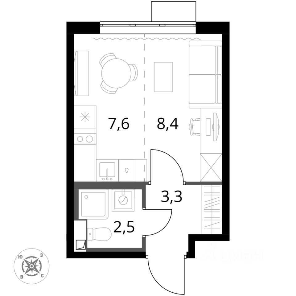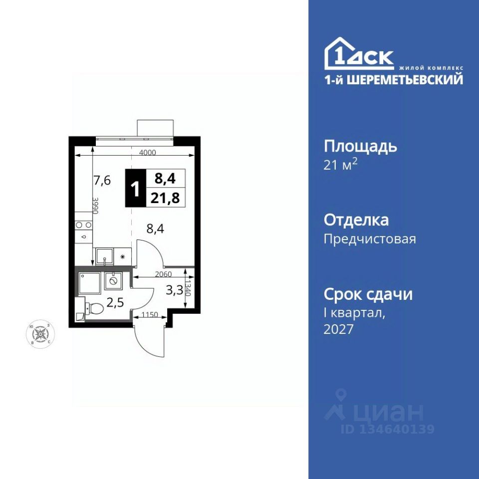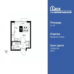 Продаётся квартира-студия номер 5 общей площадью 21.8 кв.м. на 2-м этаже 16 этажного здания. Отделка Whitebox.