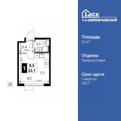 Продаётся квартира-студия номер 179 общей площадью 22.1 кв.м. на 16-м этаже 16 этажного здания. Отделка Whitebox.