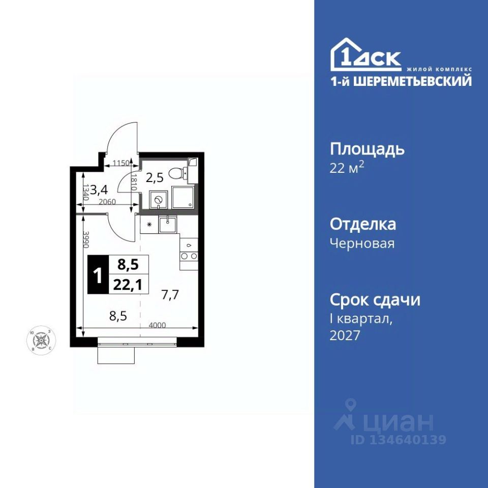 Продаётся 1-к квартира номер 155 общей площадью 22.1 кв.м. на 14-м этаже 16 этажного дома. Отделка Whitebox. Цена с учётом скидки!