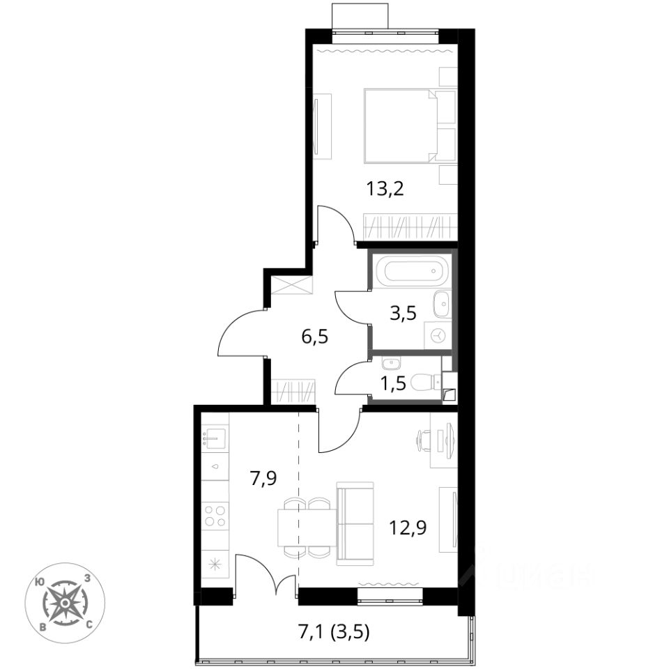 Продаётся 2-к квартира номер 352 общей площадью 49 кв.м. на 16-м этаже 16 этажного здания. Отделка Whitebox. Цена с учётом скидки.