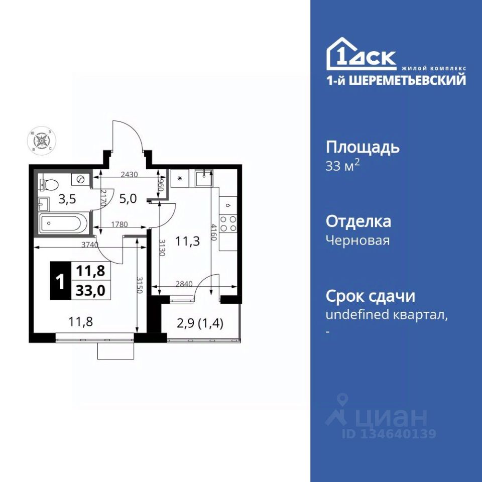 Продаётся 1-к квартира номер 331 общей площадью 33 кв.м. на 14-м этаже 16 этажного дома. Отделка Whitebox. Цена с учётом скидки!