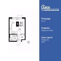 Продаётся квартира-студия номер 392 общей площадью 22.1 кв.м. на 6-м этаже 16 этажного здания. Отделка Whitebox. Цена с учётом скидки.